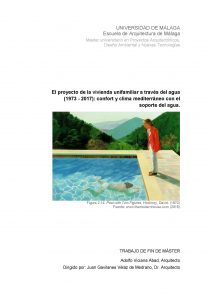 - TFM: El proyecto de la vivienda unifamiliar a través del agua (1973-2017): confort y clima mediterráneo con el soporte del agua. Dirigido por Juan Gavilanes Vélaz de Medrano, Dr. Arquitecto (2018)